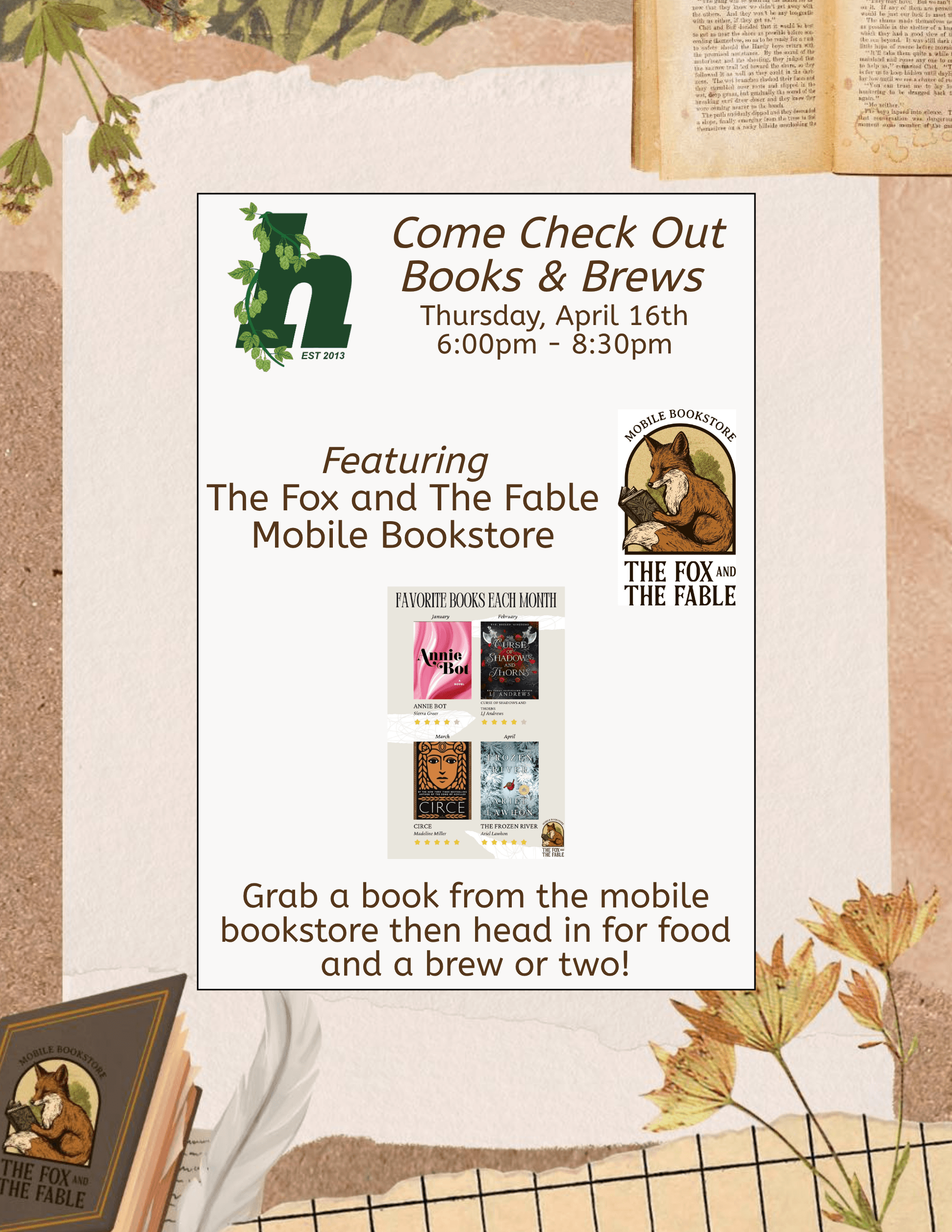Looking for a new book? Searching for an old favorite? Grab a book from The Fox and The Fable Mobile Bookstore, then come inside for a brew and some food ... |